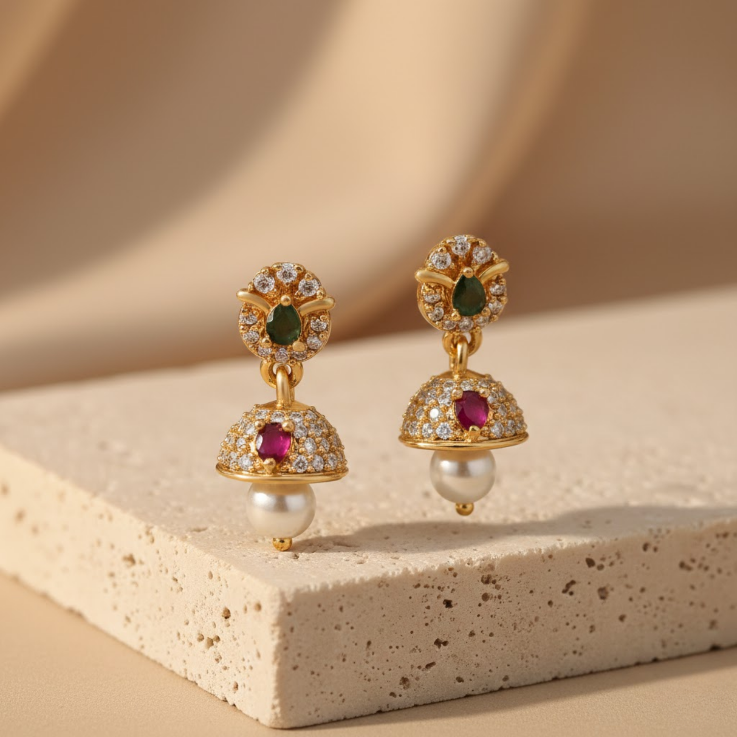 Crimson Red Pearl Sophisticated Dangle Jhumka By 2wist Designs