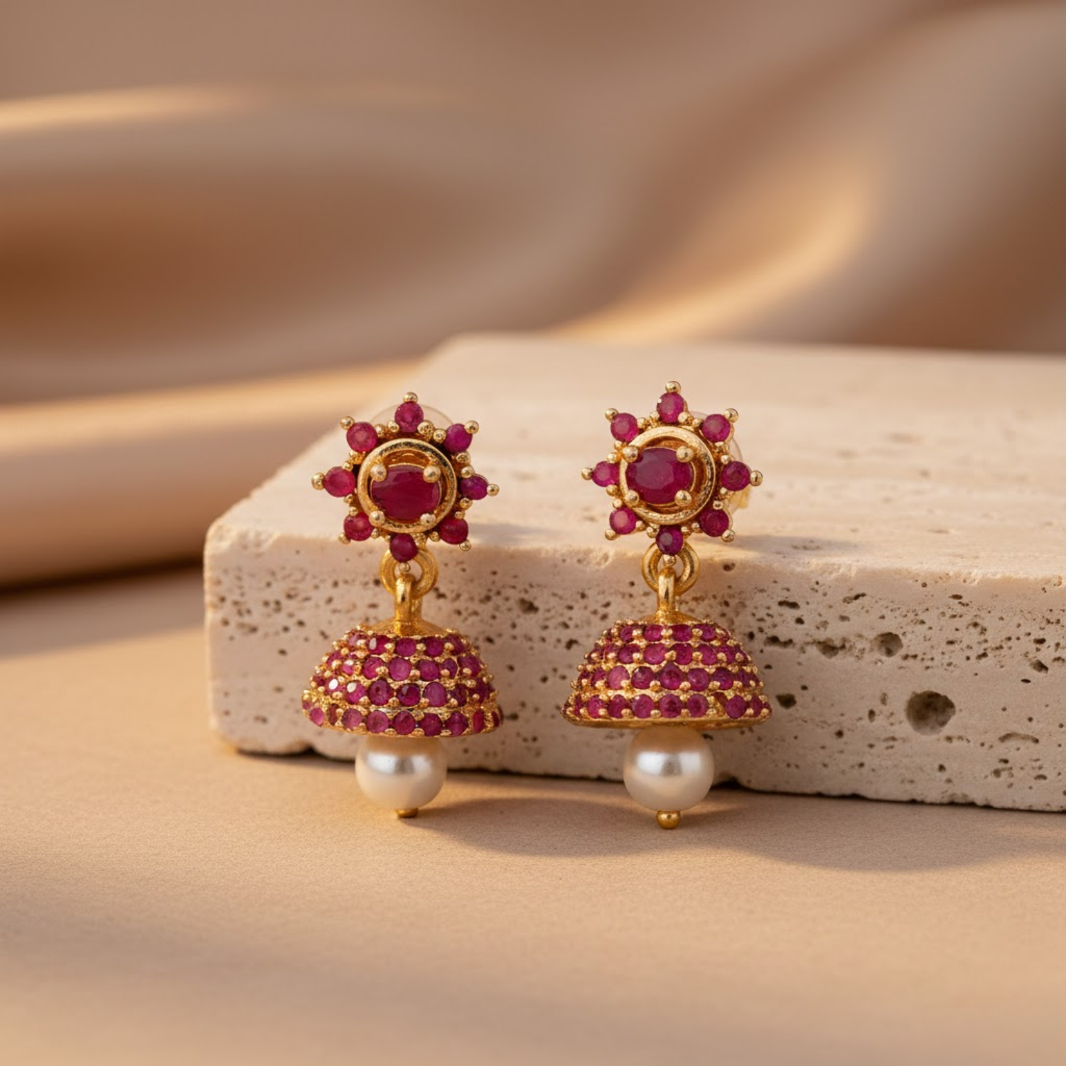 Crimson Red And Pearl Dangle Jhumka By 2wist Designs
