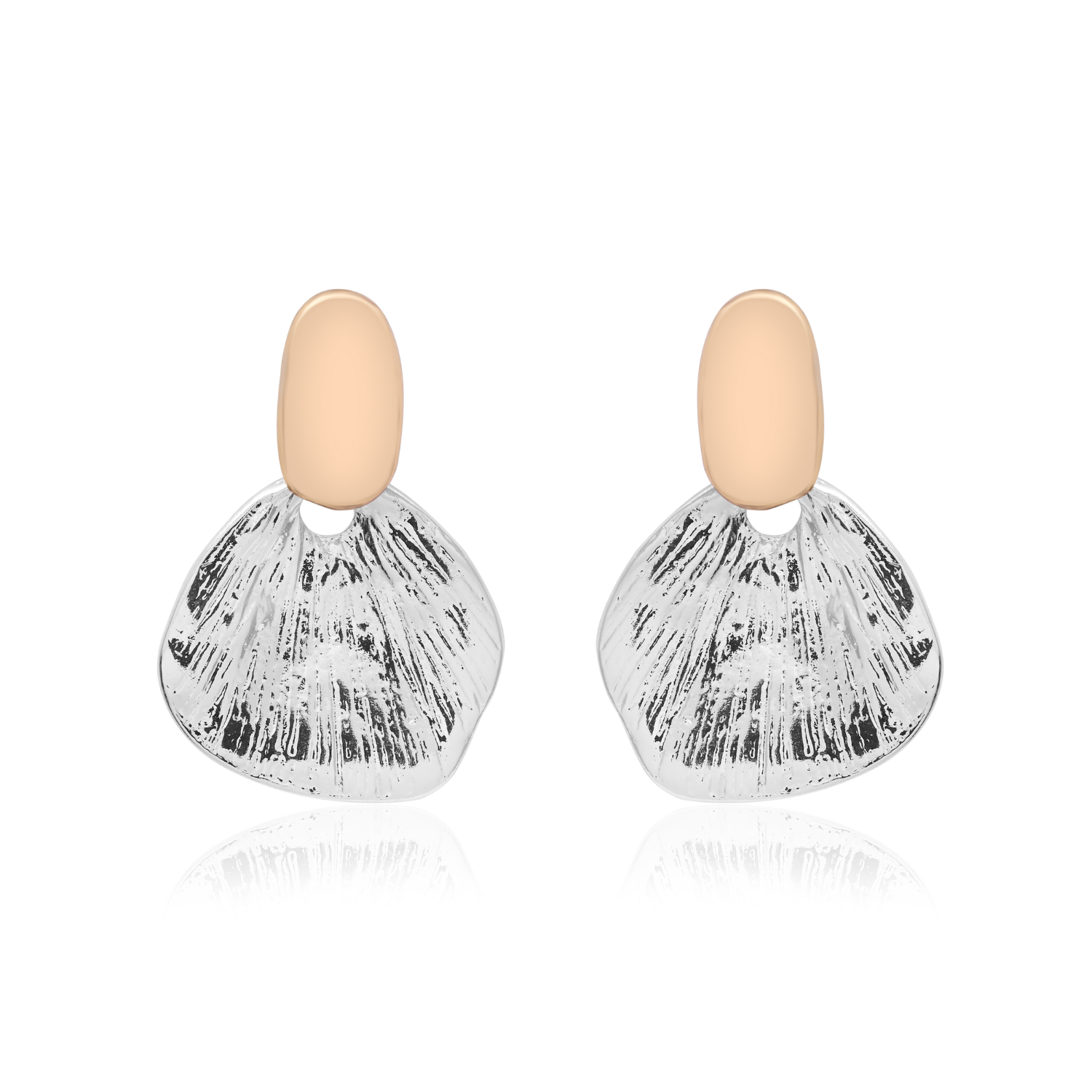Elevate Your Style With These Sophisticatedly Crafted Dual Tone Earrings From 2wist Designs. This Modern Statement Piece Is Made From High Quality Brass Metal Featuring A Refined Combination Of Textures And Tones. The Design Showcases A Minimalist Oval Stud With A Premium High Polish Golden Finish That Seamlessly Transitions Into A Stunning Abstract Petal Shaped Dangle.
