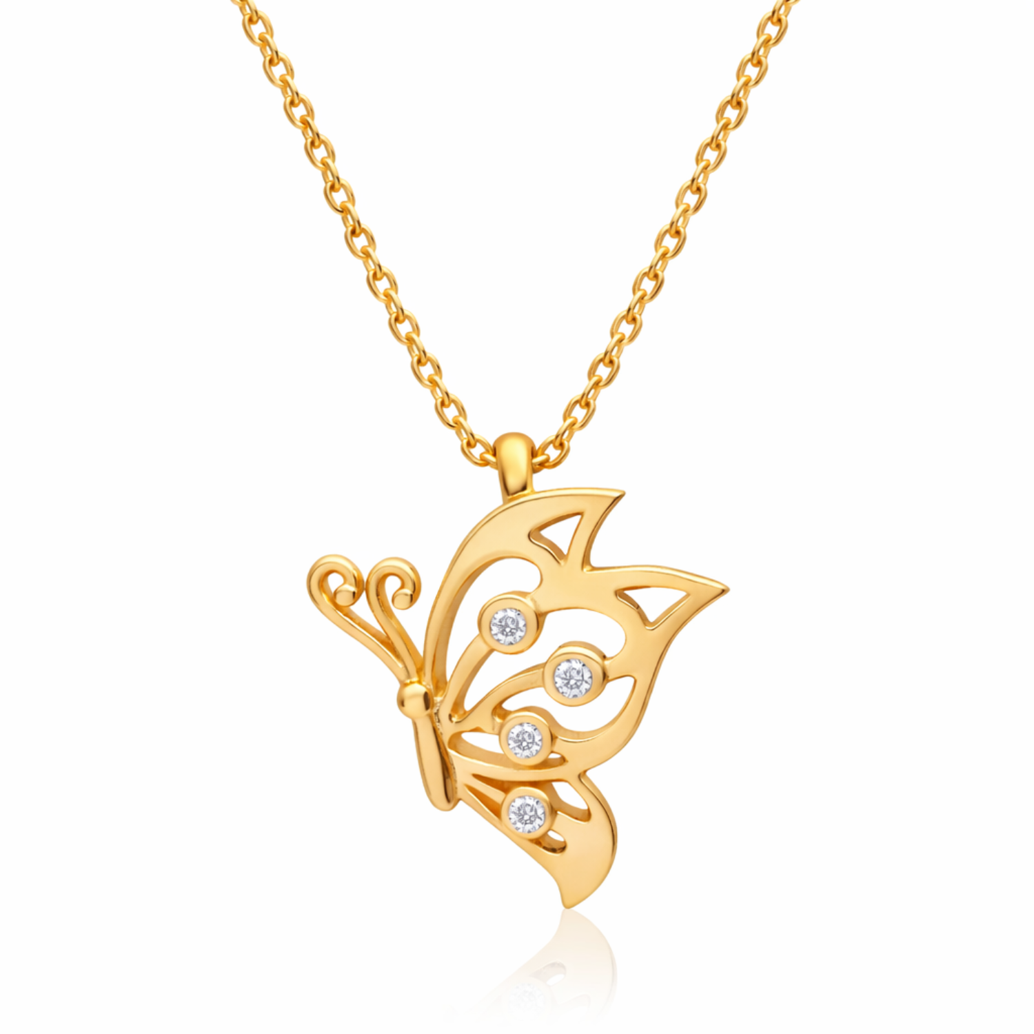 Embrace The Beauty Of Nature With This Stunnngly Crafted Golden Brass Butterfly Necklace From 2wist Designs. This Enchanting Statement Piece Is Made From High Quality Brass Metal With Premium Golden Plating Featuring An Intricate Openwork Butterfly Silhouette. The Design Is Meticulously Set With Four Brilliant Diamond Color Cubic Zirconia Stones That Capture The Light To Create A Dazzling Effect.