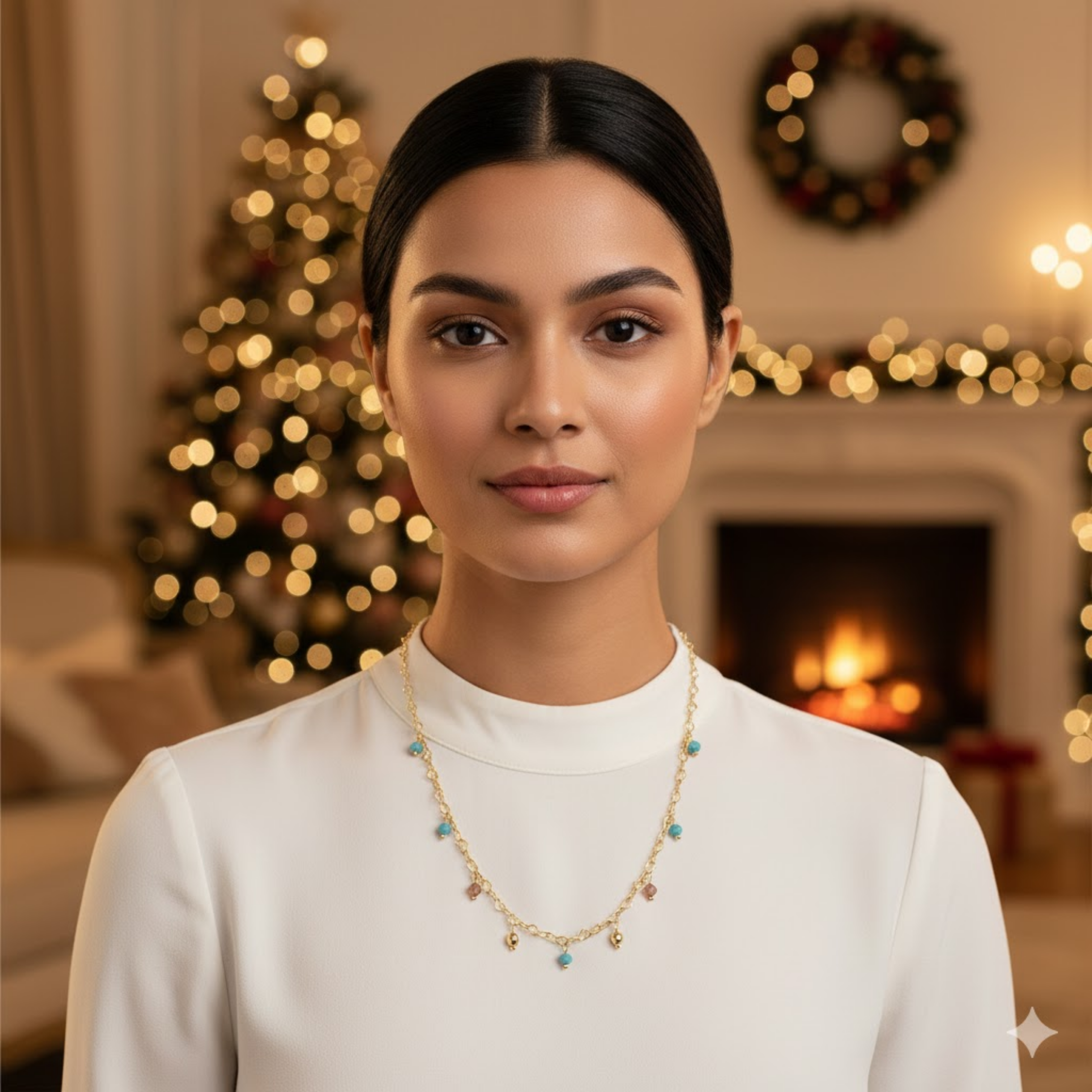 Crafted for women who love minimal jewelry with a hint of color, it complements casual outfits, festive occasions, and everyday wear. This dainty charm necklace also makes a thoughtful gift for her on birthdays, anniversaries, or special celebrations.