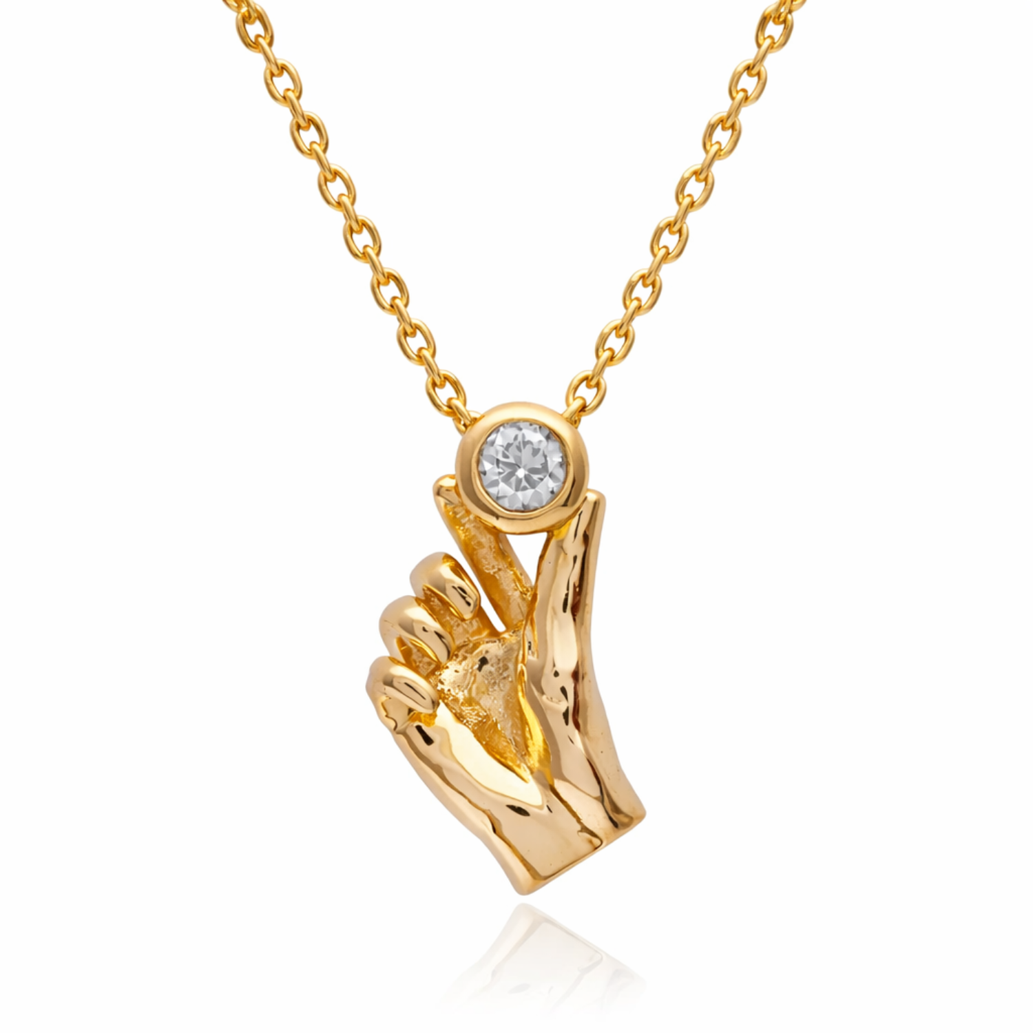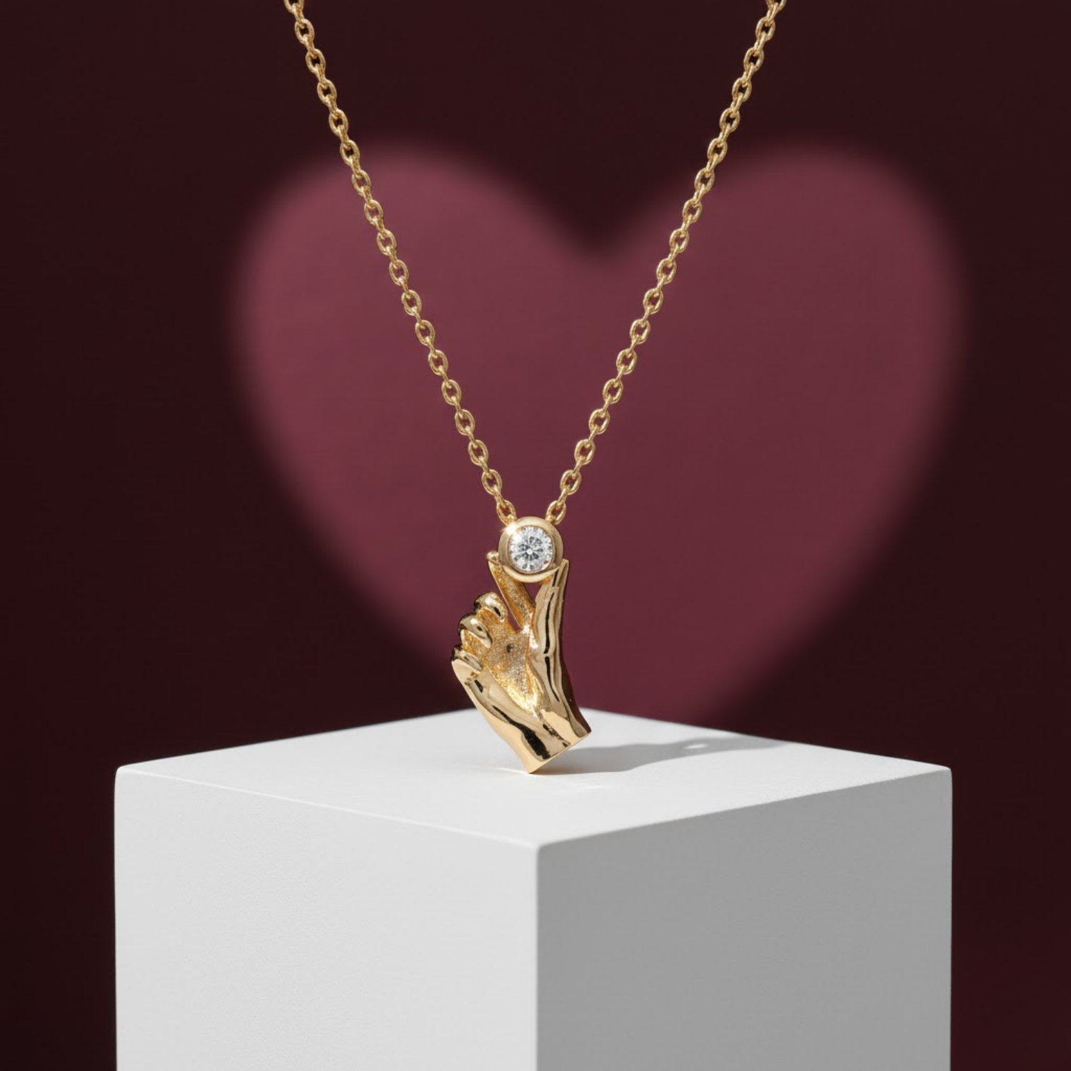 Express Your Love With This Radiantly Crafted Golden Brass Korean Heart Gesture Necklace From 2wist Designs. This Unique Statement Piece Is Made From High Quality Brass Metal With Premium Golden Plating Featuring A Detailed Hand Sculpture Forming The Iconic Finger Heart Gesture. The Design Is Perfectly Crowned With A Single Brilliant Diamond Color Cubic Zirconia Stone That Sparkles With Unmatched Clarity.
