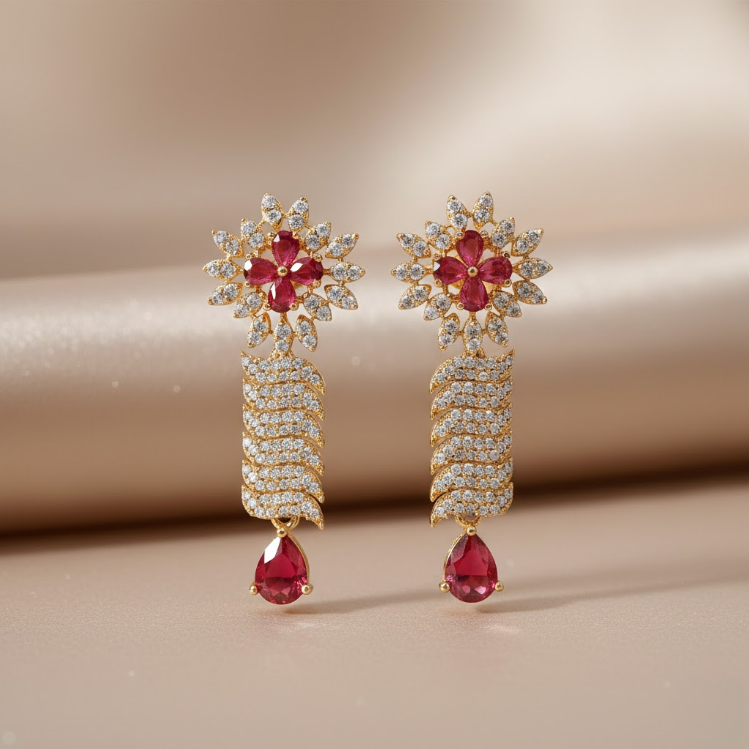* Primary Stones: Vibrant Garnet Color Cubic Zirconia