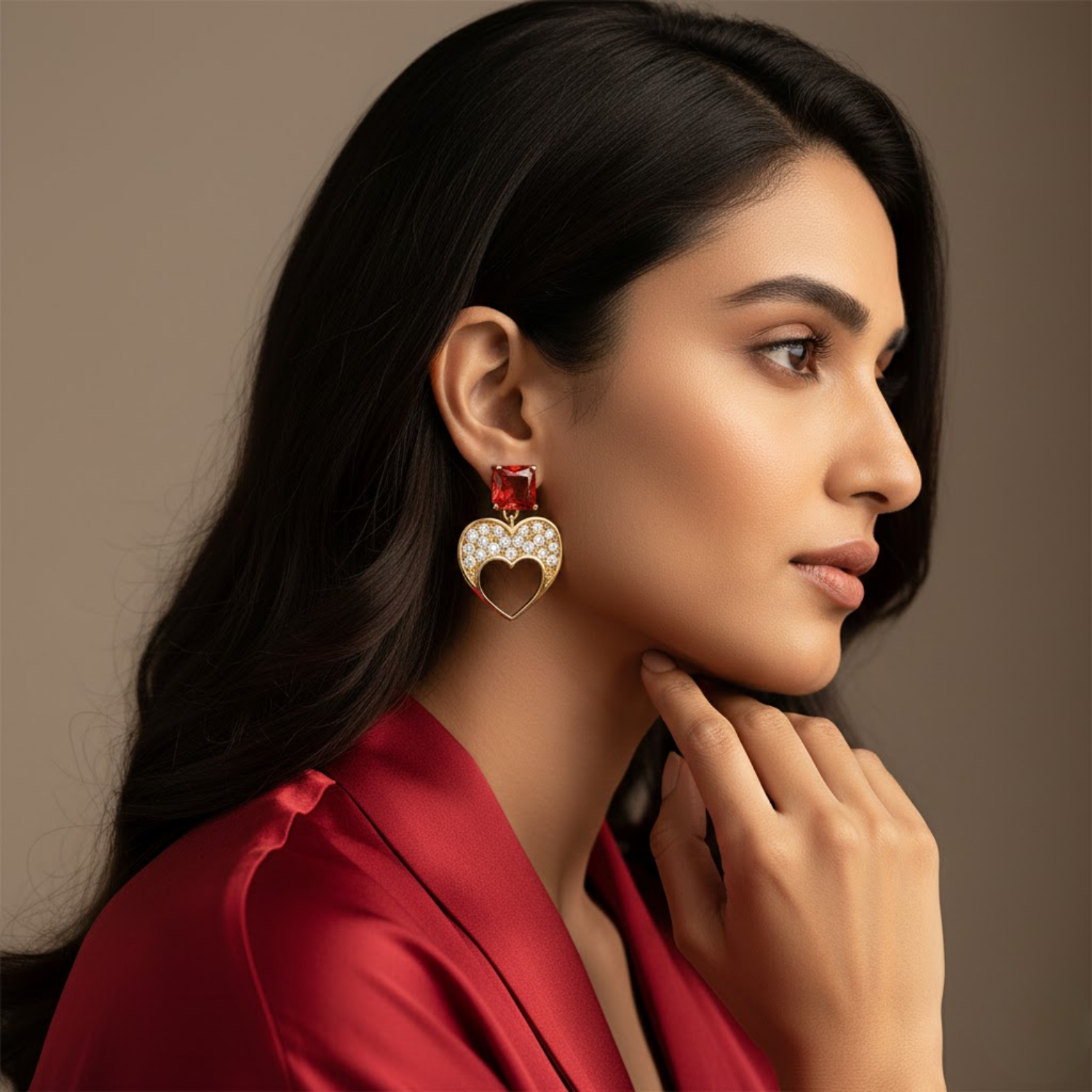 This New Arrival Earring Set Is Designed To Be A Romantic Addition To Your Wardrobe Or A Heartfelt Gift For Someone Special. The Elegant Golden Finish Combined With The Brilliant Sparkle Of The Mixed Gemstones Creates A Sophisticated Aesthetic That Complements Both Festive Outfits And Evening Attire. Despite Their Intricate Metal Work And Detailed Stone Clusters These Earrings Are Engineered To Be Lightweight And Comfortable For All Day Wear. Whether You Are Looking For A Meaningful Anniversary Surprise Or A New Hero Piece For Your Own Collection These Heart And Garnet Earrings Offer A High End Contemporary Aesthetic That Customers Value For Its Fine Craftsmanship.